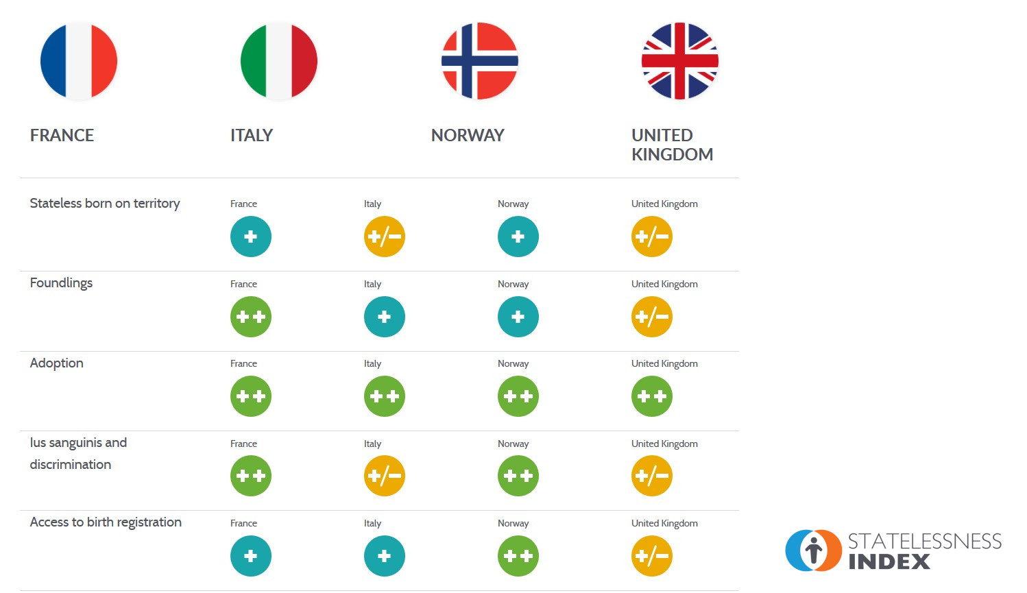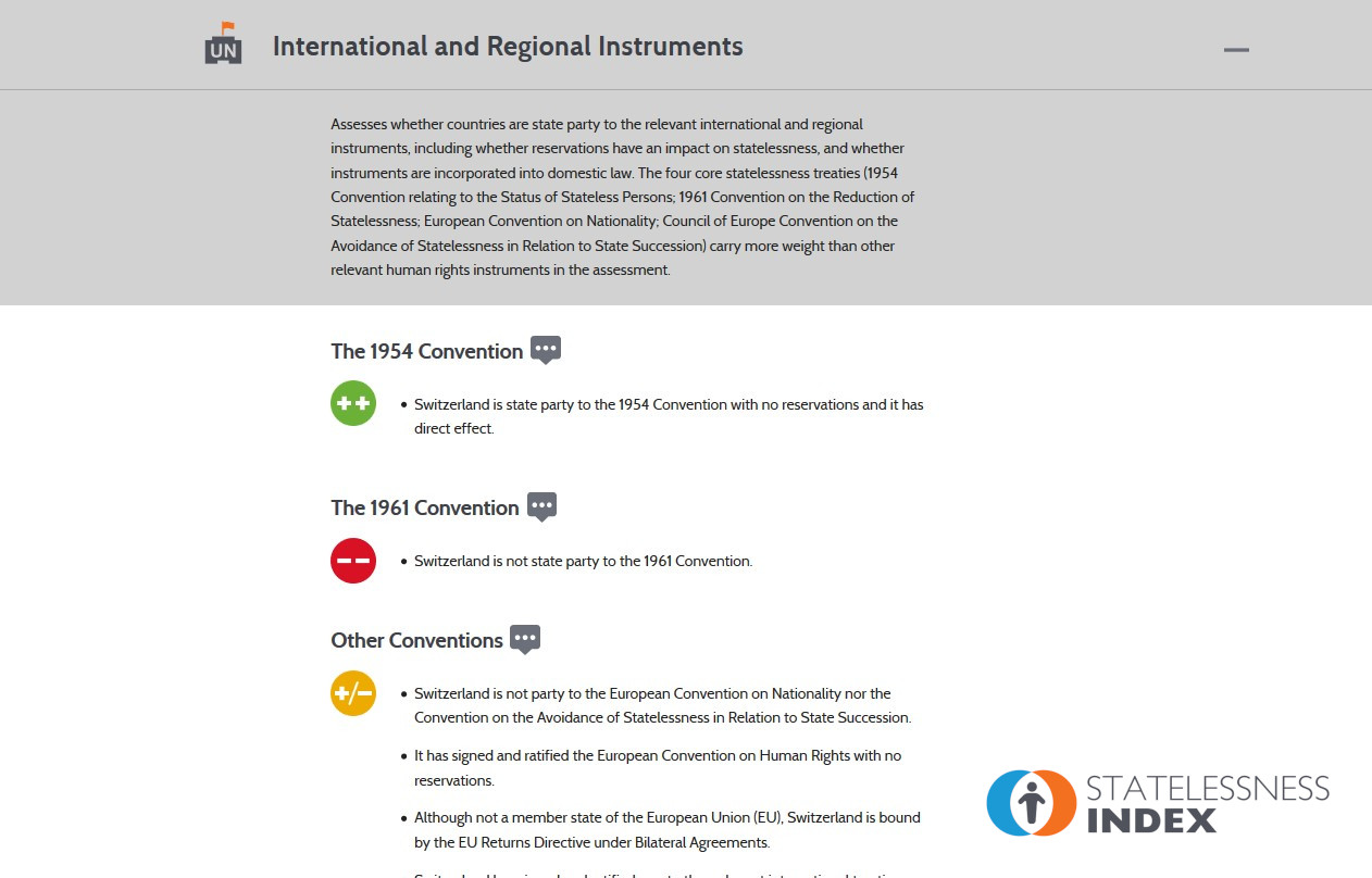 There are other invaluable online databases that examine nationality law, detention policy and practice, and integration policies, for example. And thematic or comparative research on statelessness has been undertaken in specific countries. But our Index is the first to bring together comprehensive and accessible comparative analysis of European countries’ efforts to address statelessness.